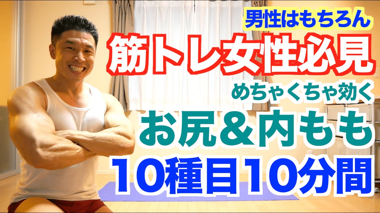 【お尻&内もも】ヒップアップ&脚(下半身)を引き締めたい方は10分間の筋トレを一緒にやりましょう。解説付きで女性も男性も初心者の方もご心配なく出来ます。