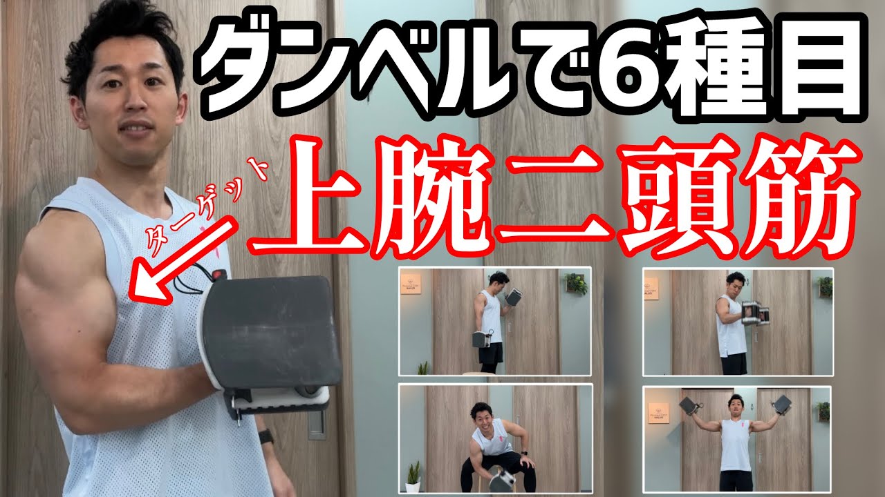 ダンベルを使用して上腕二頭筋だけを狙った6種目のトレーニングを10分間のサーキットトレーニングにしました。