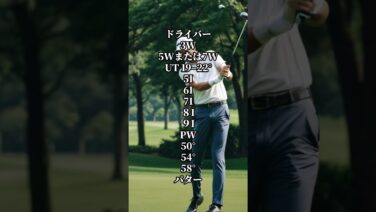 ボールを打つための主要な道具。ドライバー、フェアウェイウッド、ユーティリティ、アイアン、ウェッジ、パターなどがあり、飛距離や目的によって使い分けます。特にアイアンは飛距離に応じて細かく分かれており、番手(数字)が大きくなるほど飛距離が短くなります。