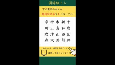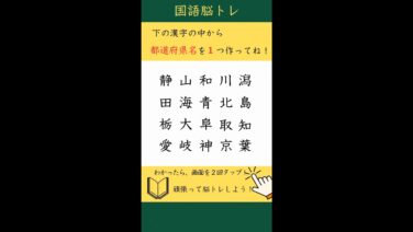 ご覧頂きありがとうございます。今回の動画はたくさんの漢字の中から指定された言葉を作る問題です。今回は都道府県名です。答えはひとつではなく、2つ、または3つある場合があります。短い間で、集中力、脳の活性化、頭を柔らかくするの脳トレ問題です。高...