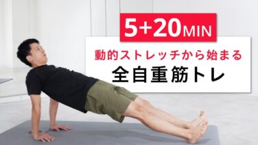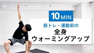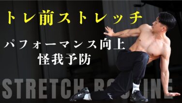 筋トレや運動前は、身体を動かしながら筋肉を刺激して関節可動域を広げる「動的ストレッチ」を行います。動的ストレッチには、筋肉を温ため、運動パフォーマンスを向上させたりケガを防止する効果もあります。ここで紹介するようなストレッチを筋トレ前に取り入れてみましょう。